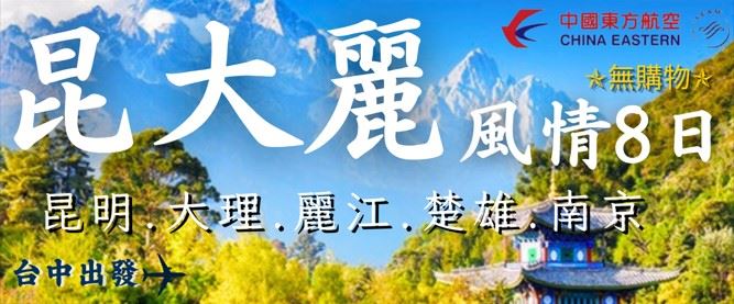 ☆台中出發☆ 昆大麗風情8天(自由行)