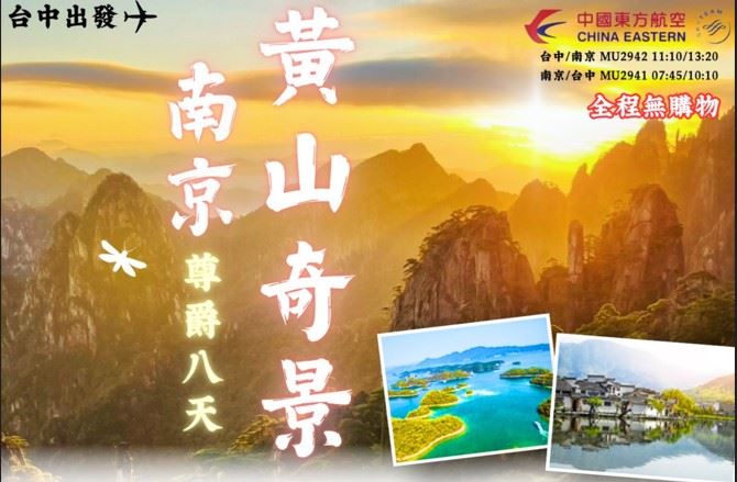 ☆台中出發☆ 黃山奇景尊貴8天(自由行)