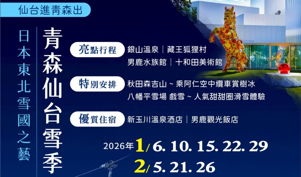 雪國之藝~青森仙台雪季6日(仙台進青森出)