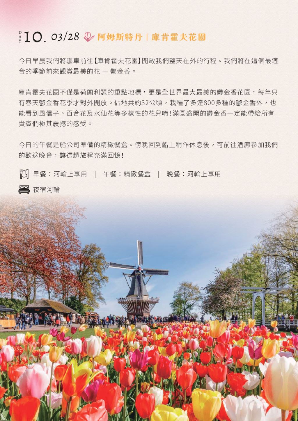萬紫千紅總是春 歐洲花曲六小河 *季節限定* 遊覽荷蘭比利時~