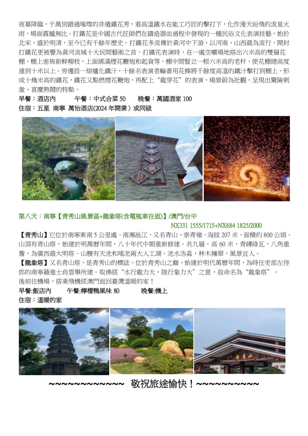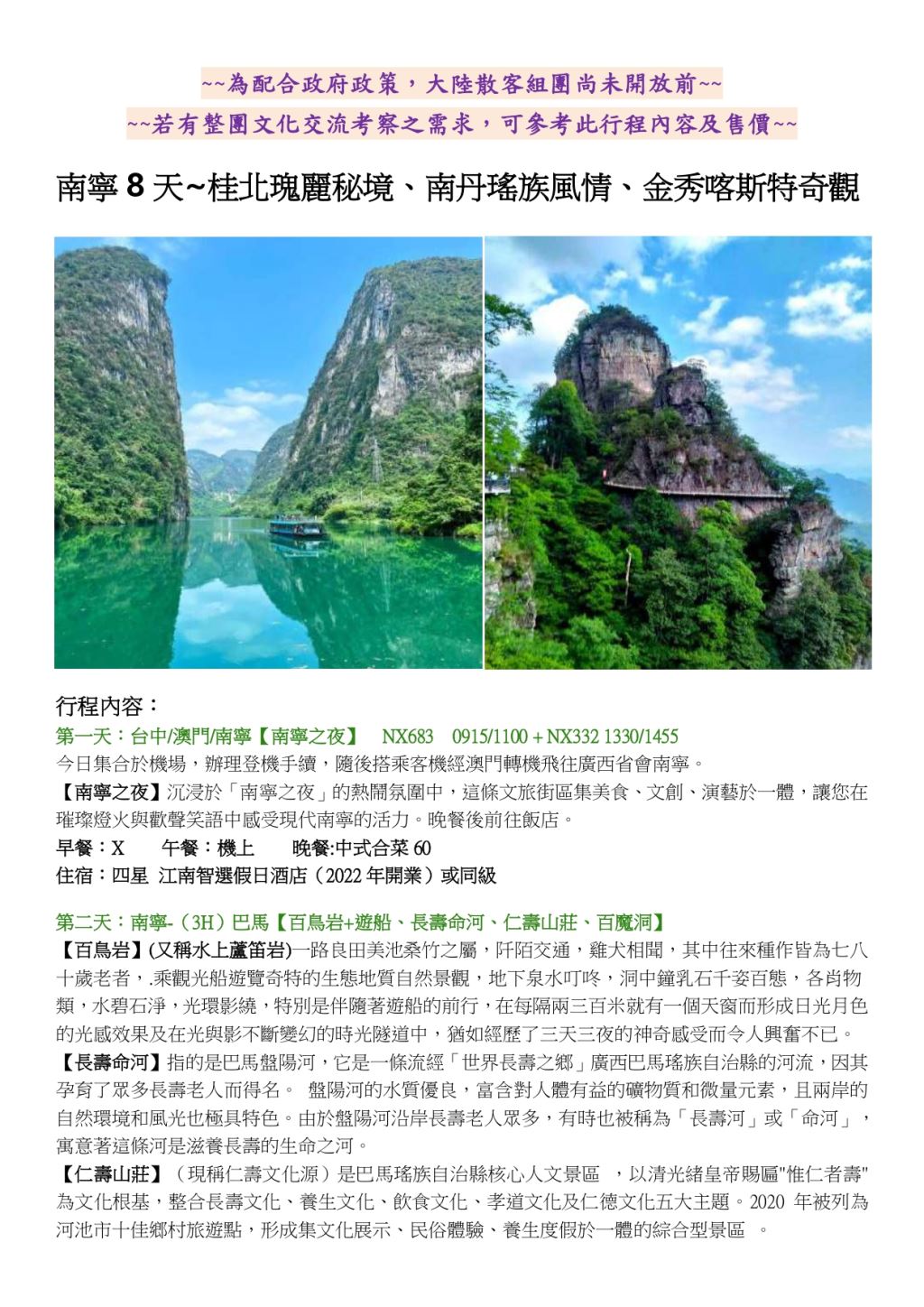 ★台中出發★ 南寧8天~桂北瑰麗秘境、南丹瑤族風情、金秀喀斯特奇觀(自由行) |