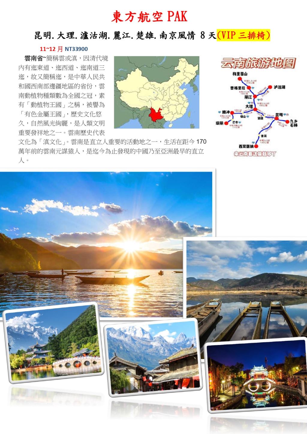 ☆台中出發☆ 昆大麗+瀘沽湖8天(自由行)