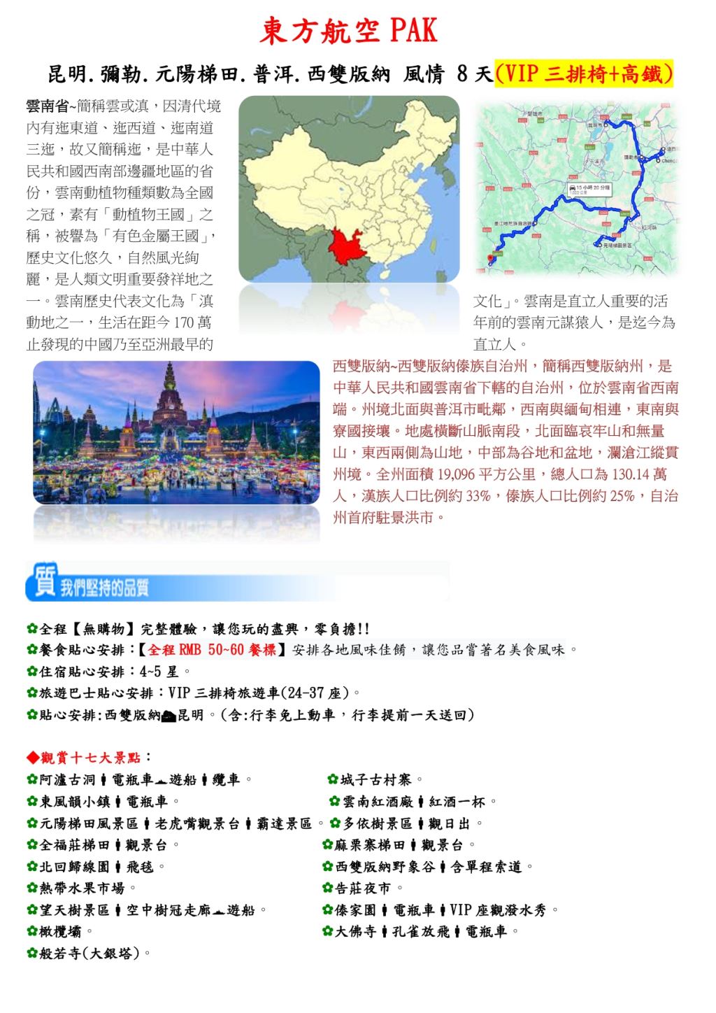 ☆台中出發☆ 昆大麗+西雙版納8天(自由行)