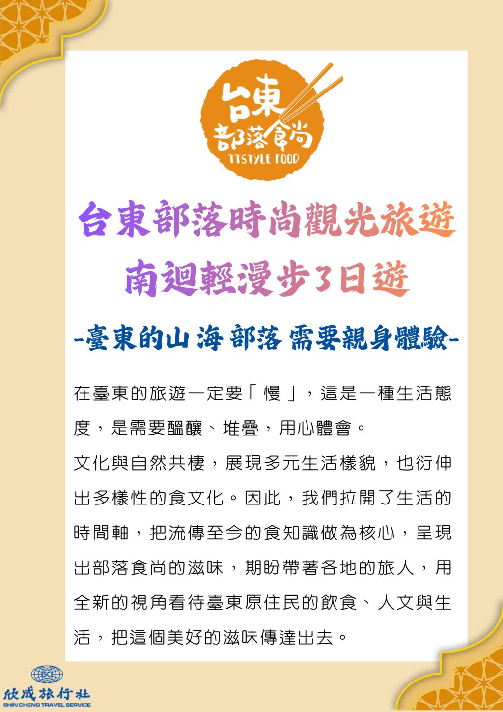 台東部落時尚觀光旅遊~南迴輕慢步3日遊
