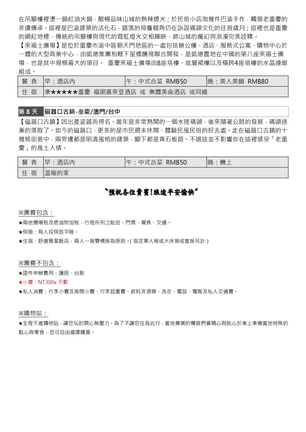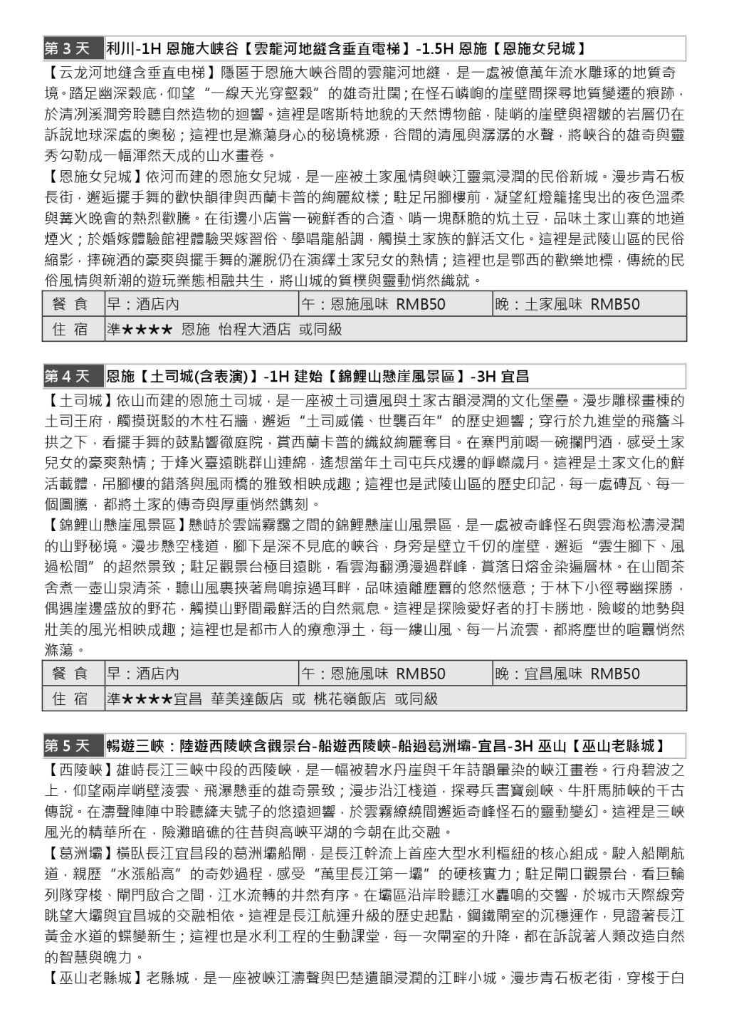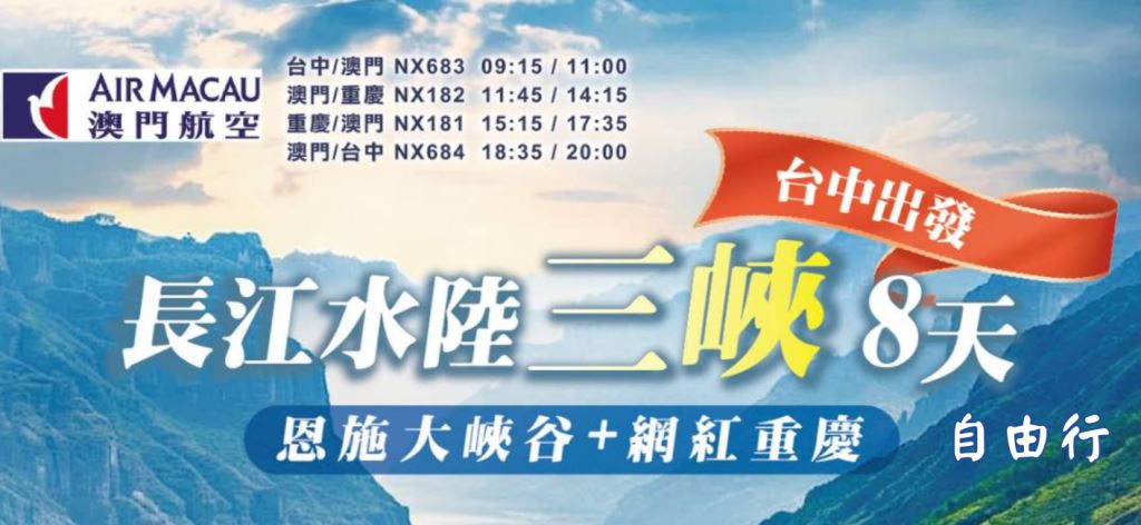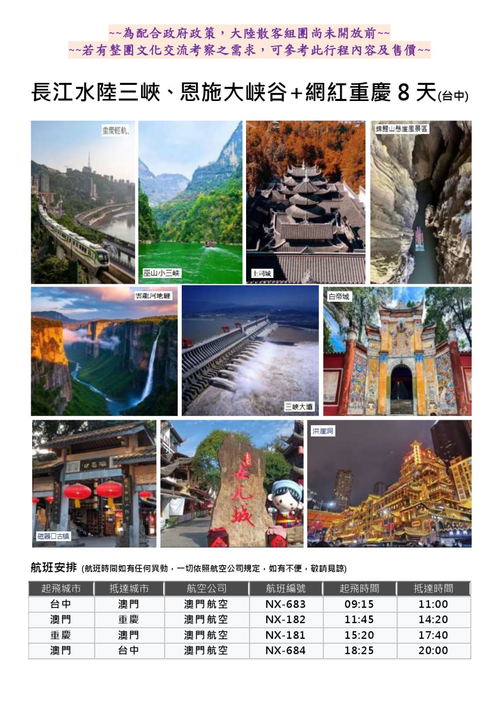 *台中出發*長江水陸三峽、恩施大峡谷+網紅重慶8 天 |